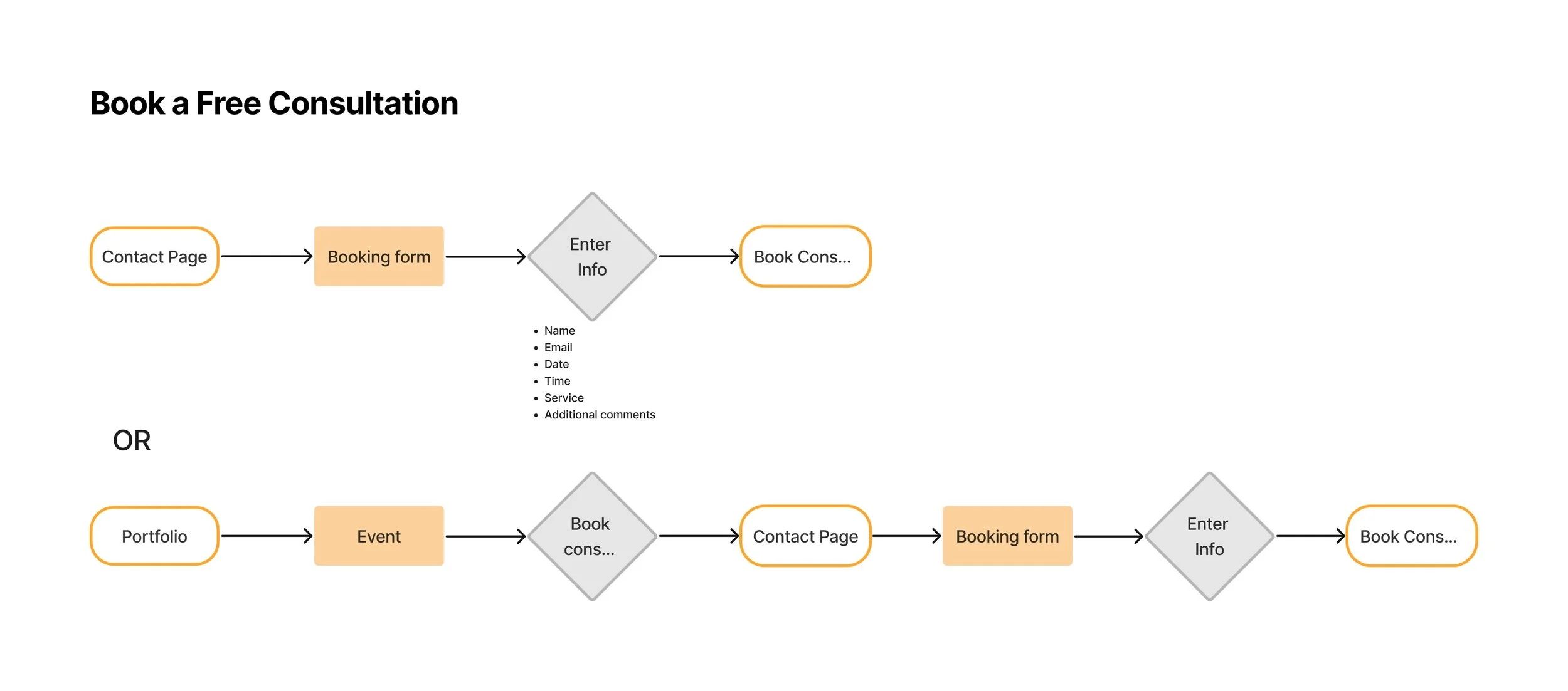The main focus of the webpage is to ensure users book a free consultation. Multiple access points are placed throughout the site so users can easily schedule a consultation at any point.